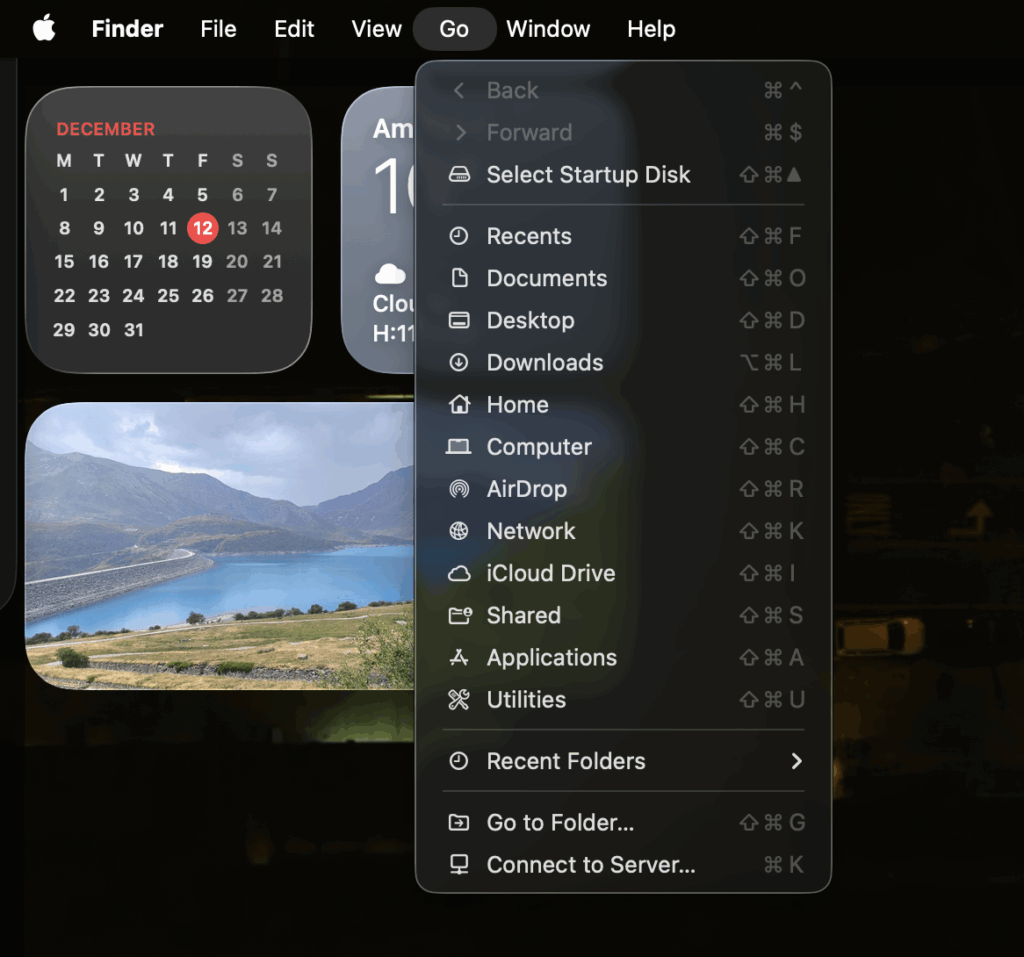 Sur la barre du haut, cliquez sur “Aller“ pour ouvrir un menu