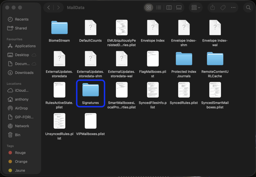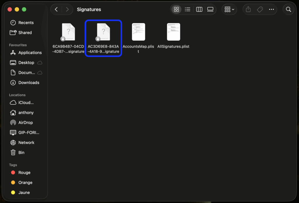 Ouvrir le dossier Signatures
