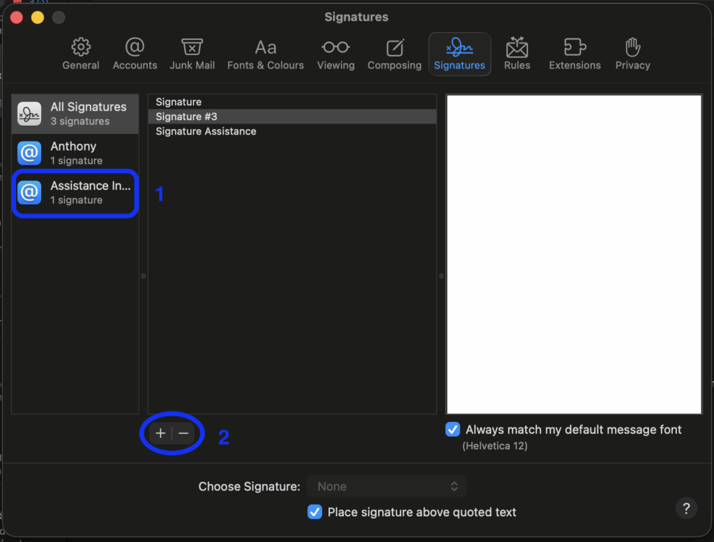Ensuite cliquez sur le bouton + pour ajouter une signature, pas besoin de rajouter quelque chose sur le panneau de droite