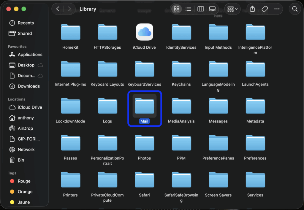 Quand ce menu est ouvert, restez appuyé sur la touche option en bas à gauche du clavier, pour faire apparaitre l’option Bibliothéque et cliquez sur Bibliothéque