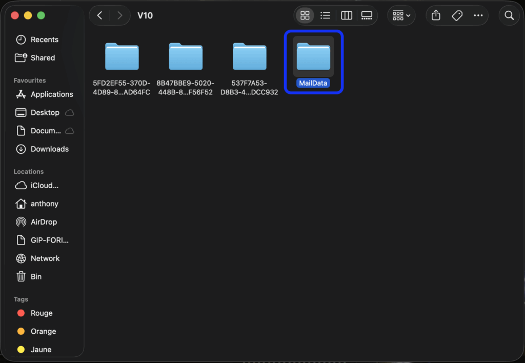 Ouvrir le dossier MailData
